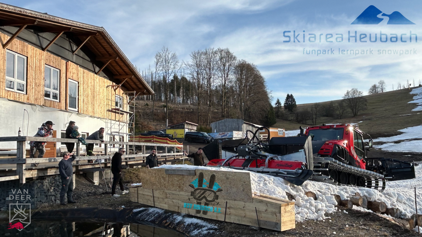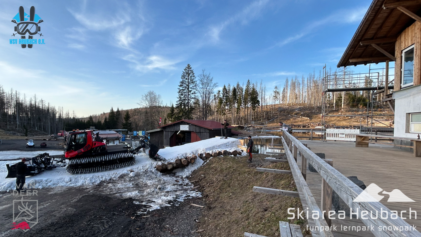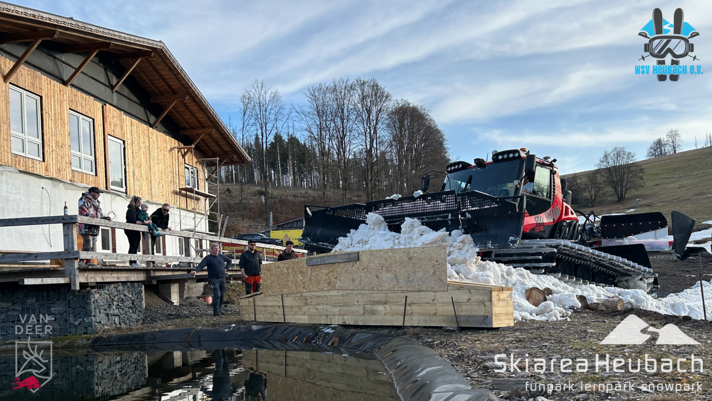 Ihr wartet bestimmt schon auf die neusten Informationen bzgl. unseres Saisonabschlusses mit dem Teichspringen. Während die Schanze im Großen und Ganzen fertig ist, haben wir uns dazu entschlossen, für euch nochmal wie gewohnt den Liftbetrieb durchzuführen. So haben wir morgen von 09:30 Uhr bis 16:00 Uhr geöffnet. Die Liftbaude, Außenbar, der Ausschankwagen am Teich, die Schneesportschule und unser Verleih ebenfalls. Gegen 14:00 Uhr starten wir mit dem „Warmup“ fürs Teichspringen. Bei Aprés-Ski-Feeling und fetten Beats könnt ihr euch dann schon mal warm machen für das darauffolgende Teichspringen! Dieses startet, wie gemeldet, gegen 16:00 Uhr. Vorher könnt ihr unseren Bully nochmal beim Präparieren der Anlaufspur zusehen. Die Kids freuen sich bestimmt. Wir freuen uns auch jetzt schon auf einen fantastischen Saisonabschluss bei Sonnenschein. Kommt vorbei und genießt mit uns die letzte Gaudi dieser Saison in der Skiarea Heubach. Danke an den WSV Heubach für die Unterstützung beim Schanzenbau und vielen Dank an die „Vorläufer“ für das Testen.
